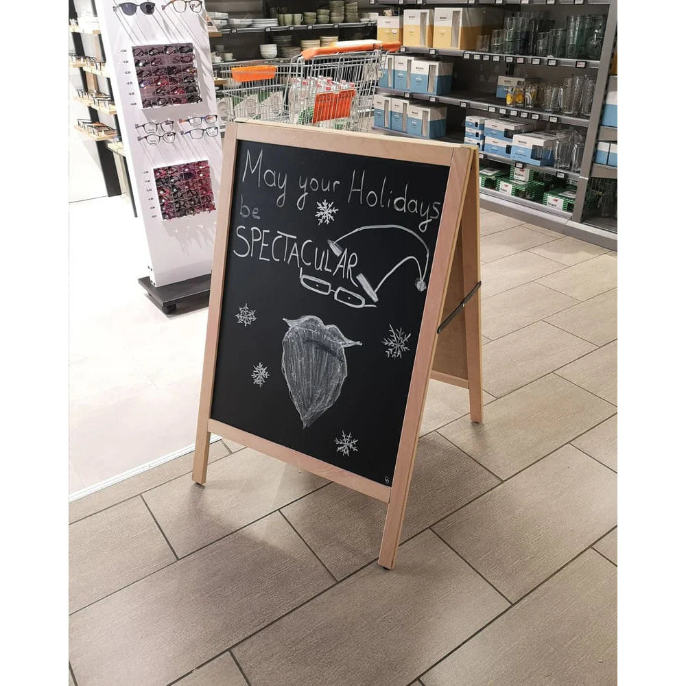 Gehwegkreidetafel 105 × 68 cm – Buche, eleganter Indoor-Aufsteller für Menüs & Angebote