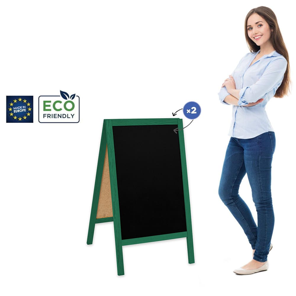 Holz-Gehwegkreidetafel 90 × 51 cm – Grün, kompakt & beidseitig beschreibbar (Indoor)