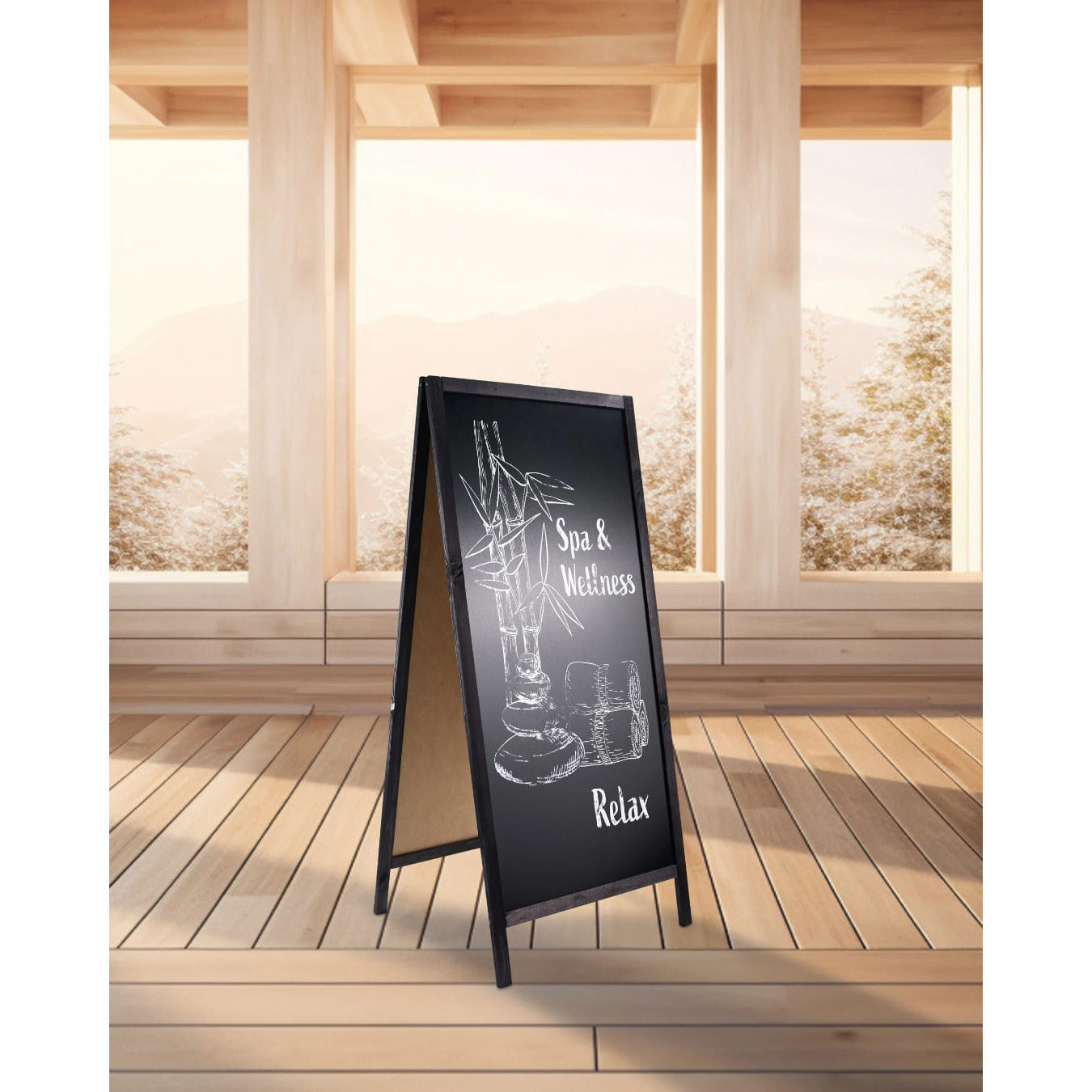 Holz Kundenstopper-Kreidetafel, 172x60cm, Schwarz, Indoor