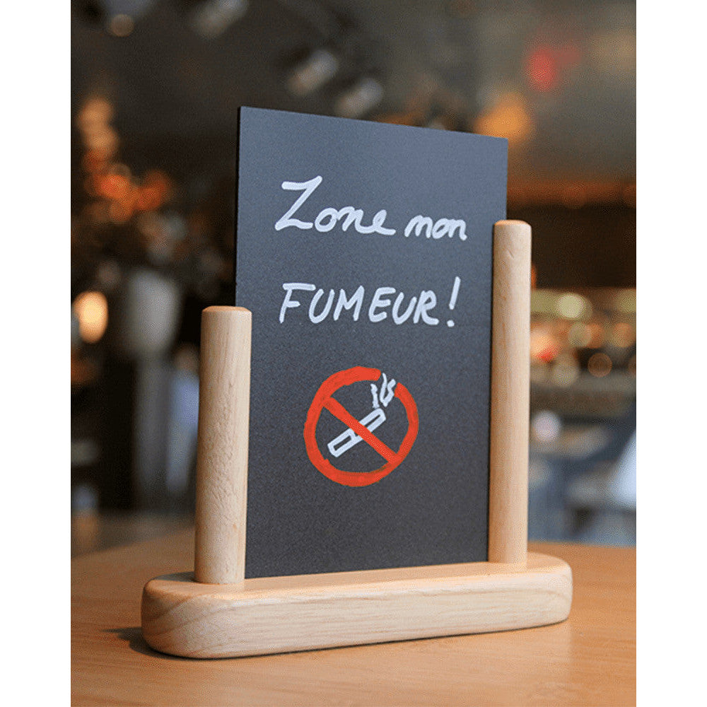 Klassische Tischkreidetafel Aufsteller zum Präsentieren von Angeboten für Ihre Besucher und Gäste. Die beschriftbare Melamin-Tafel im Format 15x21cm ist austauschbar und kann als Zubehör einzeln bei uns bestellt werden. Für die Beschriftung dieses Holz Tischaufstellers empfehlen wir unsere Securit Kreidemarker, welche Sie hier bestellen können, einzeln oder als Sets.