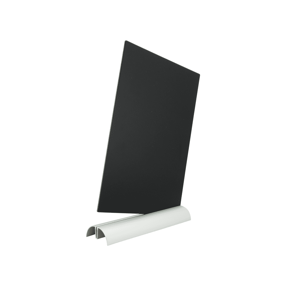 Eckiger Tischaufsteller Aluminium-Sockel und austauschbarer DIN A4 Melamin-Kreidetafel